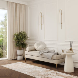 Wzór chodnika jest utrzymany w stonowanej kolorystyce beżów i brązów, co nadaje wnętrzu elegancji i ciepła, a jednocześnie wpisuje się w najnowsze trendy aranżacyjne. Dzięki swojej odporności na zabrudzenia oraz łatwości w pielęgnacji, chodnik ten sprawdzi się zarówno w domach z dziećmi, jak i zwierzętami.
