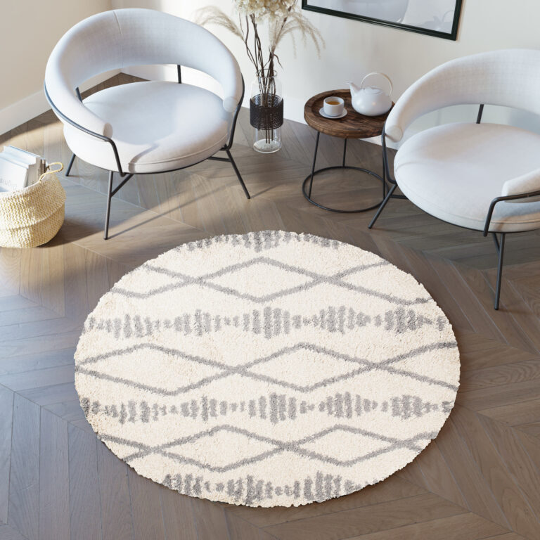 Nasza kolekcja okrągłych, miękkich dywanów shaggy to doskonały sposób na dodanie charakteru i przytulności do każdego pomieszczenia. Sprawdź wzory geometryczne, które wyróżniają tę kolekcję. Dominujące kolory, szarość i krem, dodają subtelności i elegancji, sprawiając, że dywany Boho staną się doskonałym dopełnieniem każdego wnętrza.