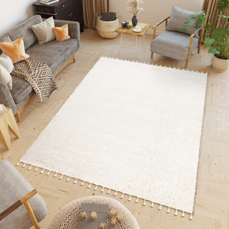 Ten kremowy dywan shaggy w stylu boho doskonale komponuje się z wnętrzami inspirowanymi naturą, a także aranżacjami w stylu skandynawskim czy rustykalnym, gdzie dominuje prostota i komfort. Wygląda pięknie na jasnych podłogach, tworząc harmonijną i spokojną przestrzeń. Dywan ten, będący częścią kolekcji Boho, wyróżnia się wysoką jakością wykonania i odpornością na codzienne użytkowanie, a miękka struktura zapewnia wyjątkowy komfort.