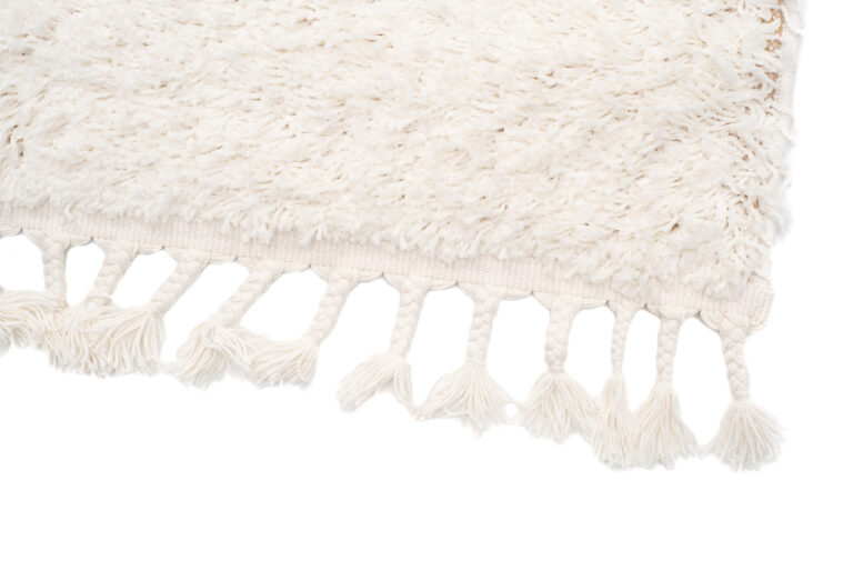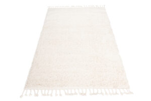 Ten kremowy dywan shaggy z frędzlami to esencja stylu boho, która wprowadza do wnętrza przytulność i naturalny urok. Miękki, puszysty włos w subtelnym, kremowym odcieniu sprawia, że dywan ten doskonale ociepla pomieszczenie, dodając mu lekkości i przyjaznej atmosfery. Frędzle umieszczone na końcach to delikatny, lecz charakterystyczny akcent, który nadaje dywanowi wyjątkowego charakteru boho, świetnie sprawdzając się w sypialniach, salonach czy pokojach dziennych.