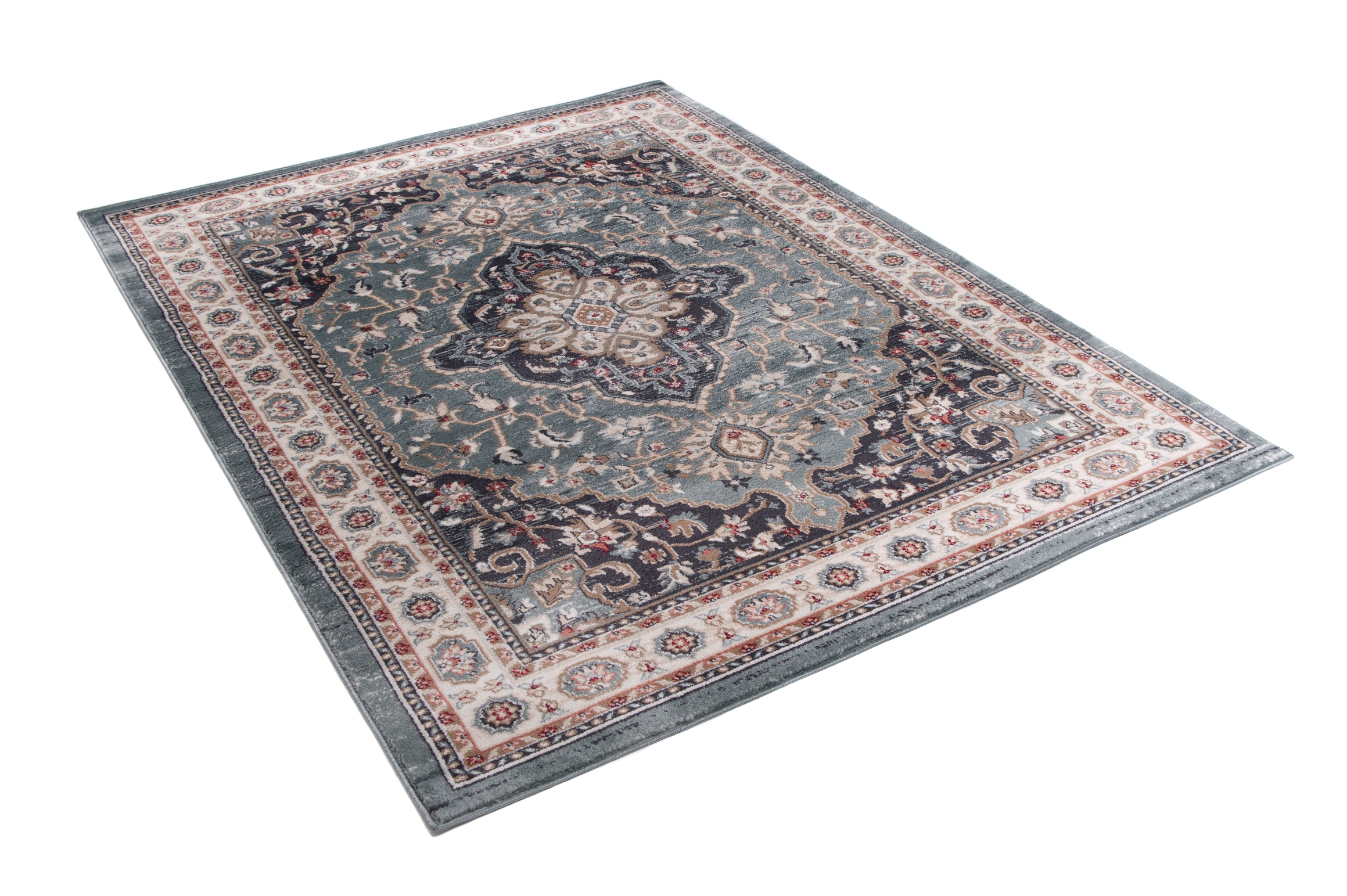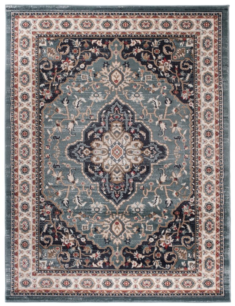 Wykonany z wysokiej jakości materiałów, ten niebiesko-kremowy dywan jest odporny na ścieranie i łatwy w utrzymaniu czystości, co czyni go praktycznym rozwiązaniem do codziennego użytkowania. Ten dywan to idealny wybór dla osób poszukujących klasycznego, eleganckiego dodatku, który doda wnętrzu szyku i wyjątkowego charakteru.