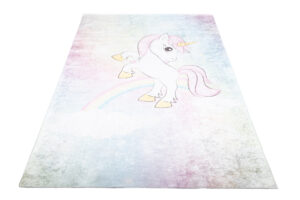 Kolekcja Emma to dywany drukowane, brak klasycznego włosia to coś co czyni je jeszcze bardziej wyjątkowymi. Można je prać w pralce (w temperaturze 30 stopni) i mają antypoślizgowy spód – na wypadek, gdyby Twoje dziecko postanowiło uczynić z dywanu swój nowy plac zabaw. Mimo krótkiego runa, dywan jest przyjemny w dotyku i świetnie izoluje zimno. Dekoracja jest bardzo lekka – ułatwia to sprzątanie, jak i daje możliwość stworzenia kącika do zabawy w prawie każdym miejscu w domu.