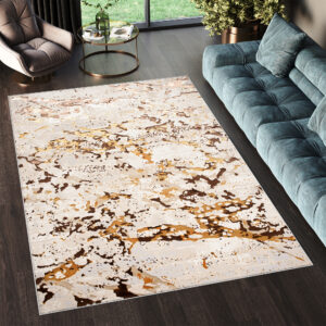 Dywany Golden – linia wysokiej jakości dywanów z wzorami abstrakcyjnymi i vintage w zachwycającej palecie kolorów kremu i złota. Oprócz olśniewających walorów estetycznych, dywany Golden są również łatwe w utrzymaniu i pielęgnacji. Można je odkurzać lub czyścić punktowo w zależności od potrzeb, co gwarantuje, że pozostaną w nieskazitelnym stanie przez wiele lat. Ponadto, dywany opatrzone są certyfikatem OEKOTEX – nie zawierają szkodliwych zdrowiu substancji.