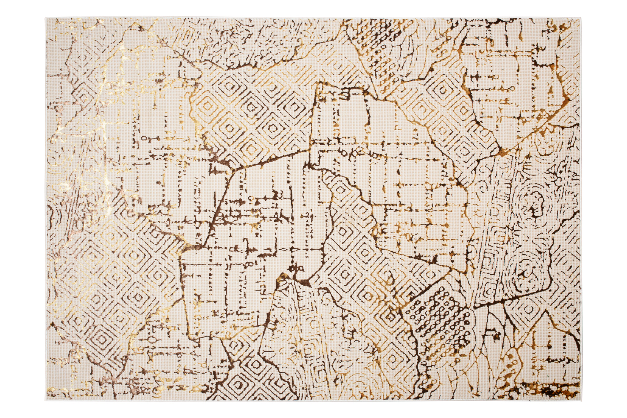 Dywany Golden – linia wysokiej jakości dywanów z wzorami abstrakcyjnymi i vintage w zachwycającej palecie kolorów kremu i złota. Oprócz olśniewających walorów estetycznych, dywany Golden są również łatwe w utrzymaniu i pielęgnacji. Można je odkurzać lub czyścić punktowo w zależności od potrzeb, co gwarantuje, że pozostaną w nieskazitelnym stanie przez wiele lat. Ponadto, dywany opatrzone są certyfikatem OEKOTEX – nie zawierają szkodliwych zdrowiu substancji.