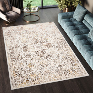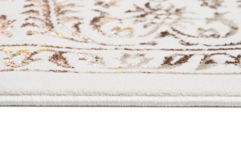 Dywany Golden – linia wysokiej jakości dywanów z wzorami abstrakcyjnymi i vintage w zachwycającej palecie kolorów kremu i złota. Oprócz olśniewających walorów estetycznych, dywany Golden są również łatwe w utrzymaniu i pielęgnacji. Można je odkurzać lub czyścić punktowo w zależności od potrzeb, co gwarantuje, że pozostaną w nieskazitelnym stanie przez wiele lat. Ponadto, dywany opatrzone są certyfikatem OEKOTEX – nie zawierają szkodliwych zdrowiu substancji.