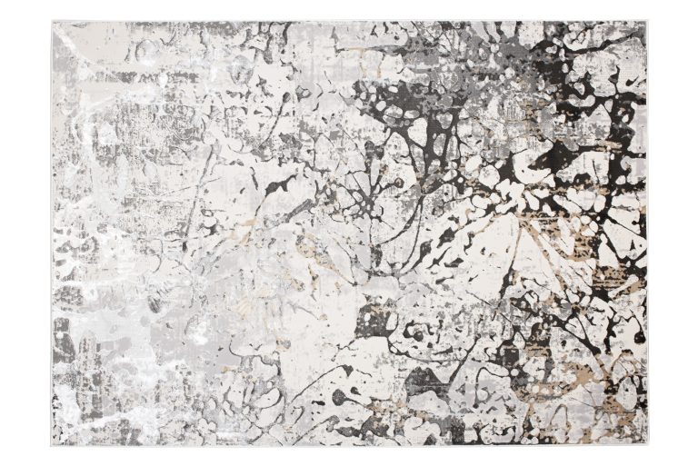 Ten szaro-kremowy dywan o abstrakcyjnym wzorze zachwyca unikalną kompozycją inspirowaną współczesną sztuką. Przenikające się odcienie szarości i kremu tworzą efekt głębi, przywodząc na myśl malarskie faktury lub cienie na płótnie. Taki szaro-kremowy dywan idealnie pasuje do wnętrz nowoczesnych i industrialnych, gdzie wniesie nieco artystycznego charakteru. Świetnie sprawdzi się na jasnych podłogach, wprowadzając delikatny kontrast, ale równie dobrze wygląda na ciemnych powierzchniach, subtelnie ocieplając przestrzeń.