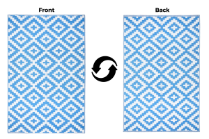 – dywan z trwałego materiału nadającego się do recyklingu – opatrzony certyfikatem OEKO-TEX, nie zawiera szkodliwych substancji – bardzo wytrzymały i łatwy w pielęgnacji – wodoodporny i odporny na ciężkie warunki atmosferyczne, nie blaknie – składany – łatwy do przechowywania – dwustronny – idealny na: taras, patio, balkon, piknik, plażę, camping