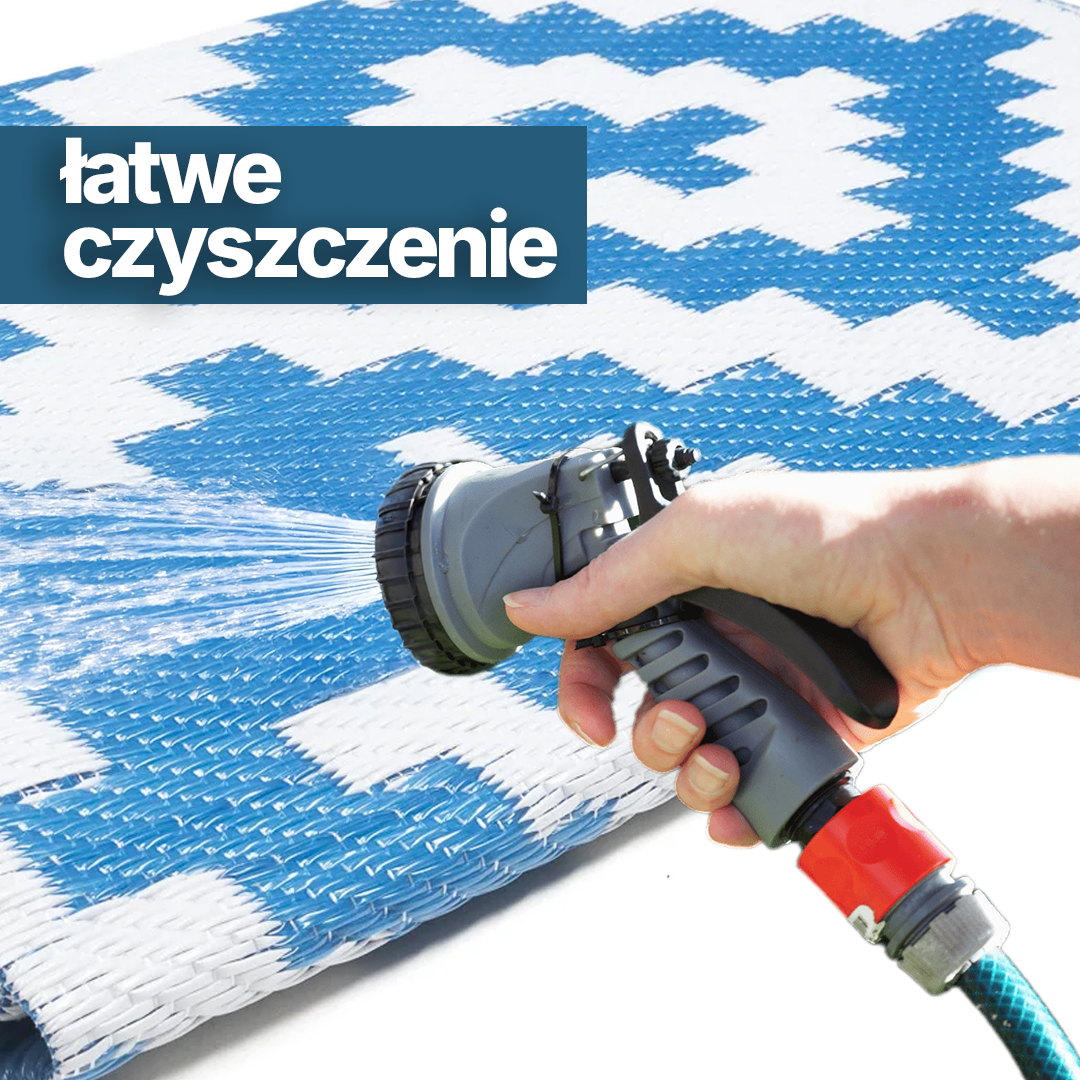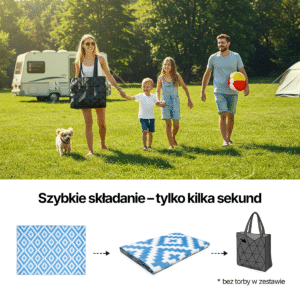Dywan outdoroowy w niebiesko-białe romby to doskonały wybór dla tych, którzy pragną dodatkowej dawki stylu i wygody podczas letnich przygód na plaży, tarasie lub podczas kempingu. Ten dwustronny dywan wyróżnia się pięknym wzorem niebieskich rombów na białym tle, tworząc efektowny i świeży wygląd. Wykonany z wysokiej jakości materiałów, dywan outdoroowy nie tylko prezentuje się estetycznie, ale także zapewnia praktyczne korzyści. Mata zewnętrzna jest również lekka i składana, co ułatwia jej przenoszenie i przechowywanie. Możesz ją zwinąć i zabrać ze sobą w każde miejsce, gdzie potrzebujesz wygodnego miejsca do relaksu na świeżym powietrzu.