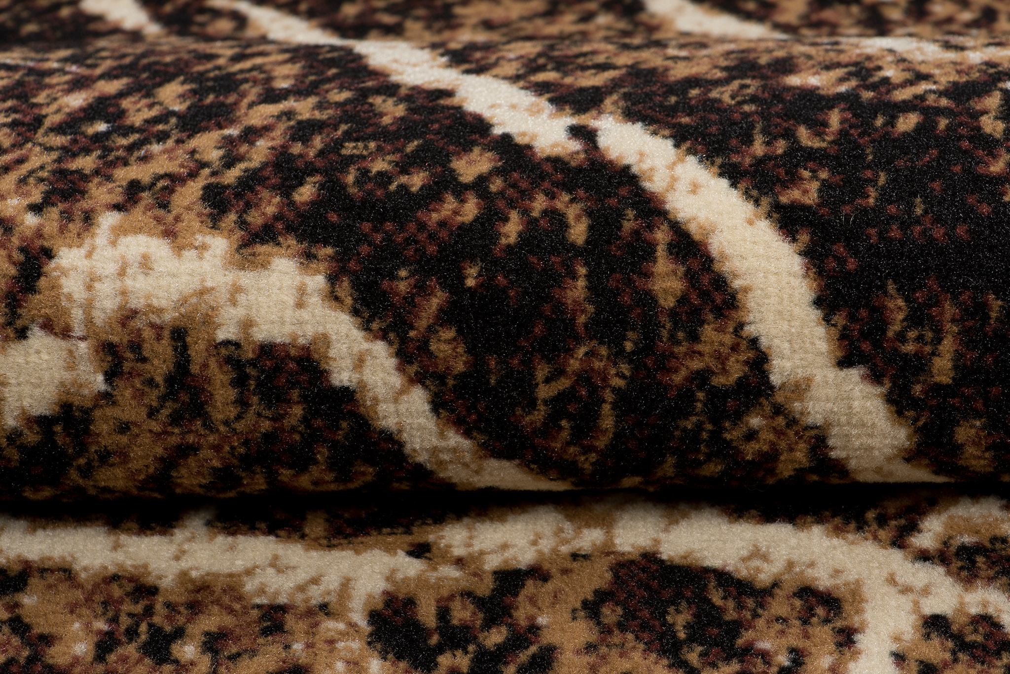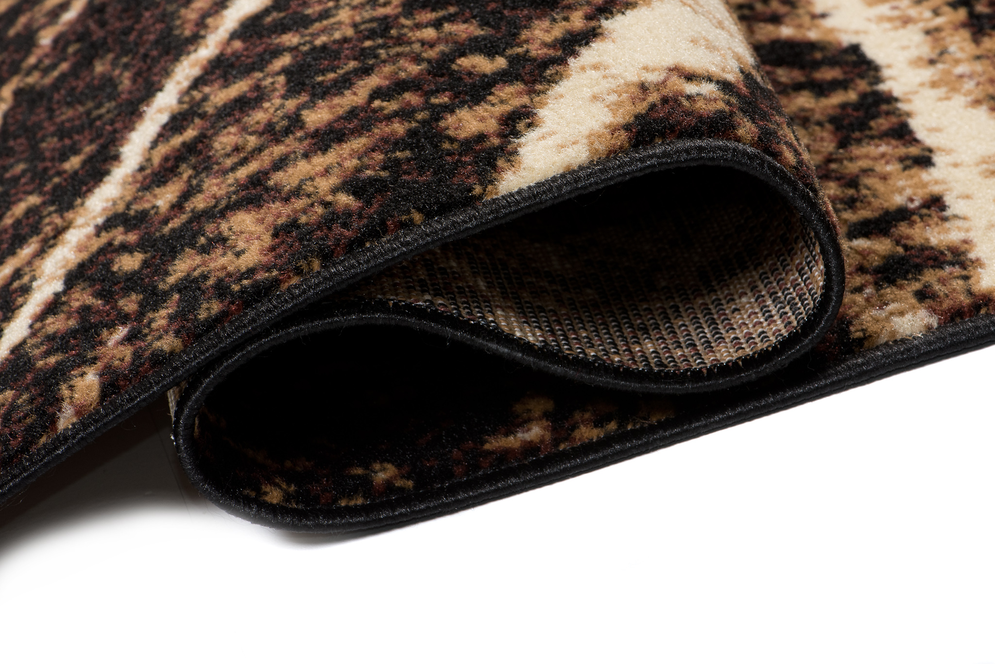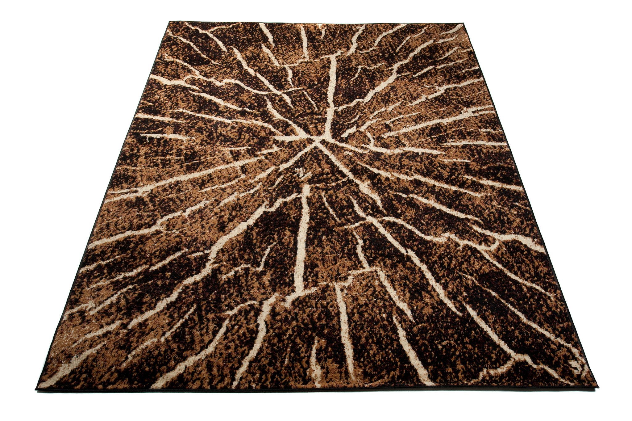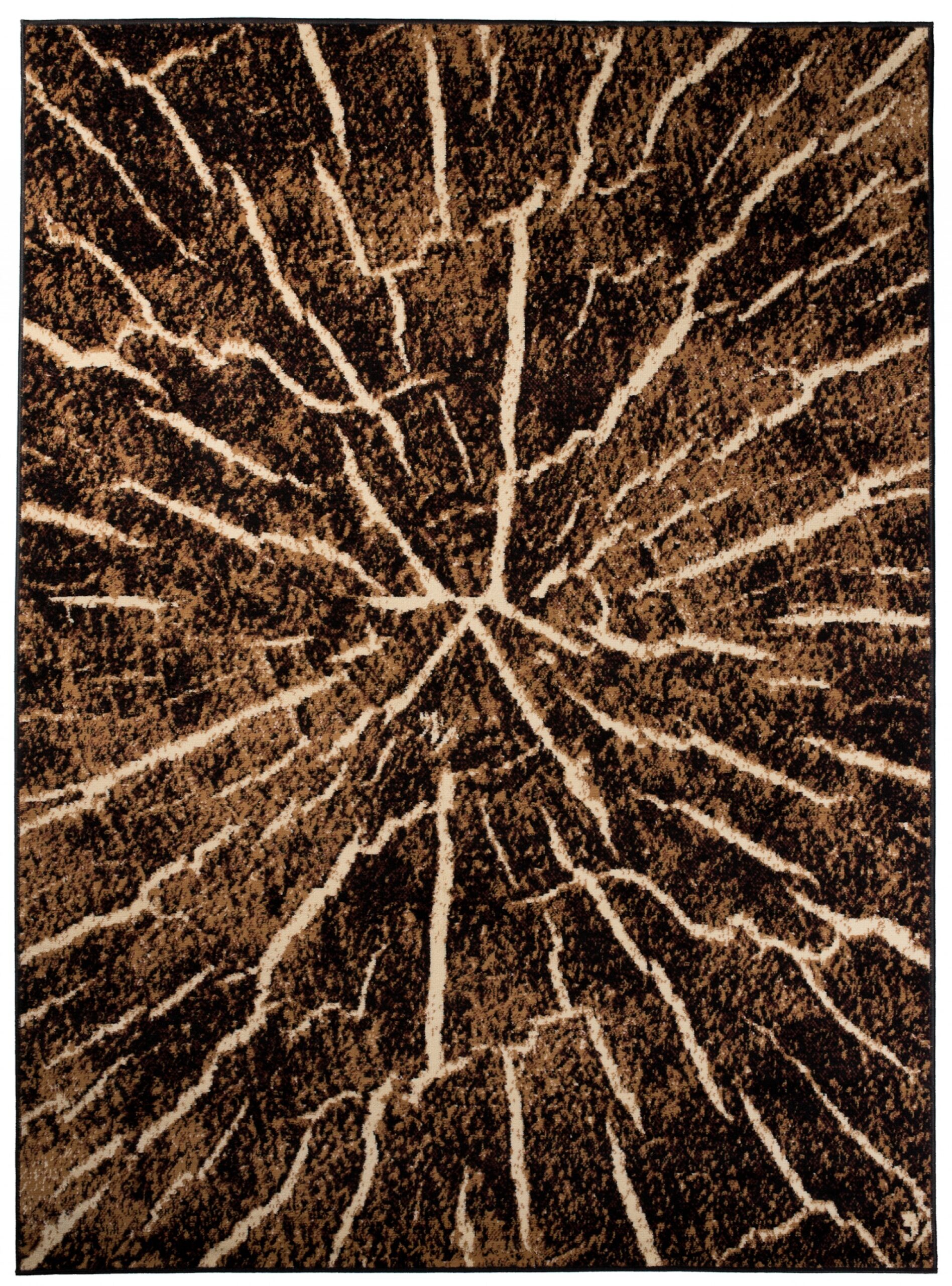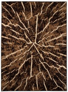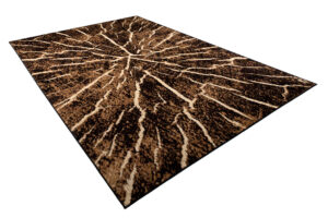 Ten brązowo-czarny dywan inspirowany naturalnym przekrojem drewna zachwyca oryginalnym wzorem, który wygląda jak wnętrze ściętego pnia drzewa. Koncentryczne linie w różnych odcieniach brązu i czerni tworzą efekt słojów, oddając piękno naturalnego drewna i jego unikatową strukturę. Ten brązowo-czarny dywan doskonale wpasuje się w styl loftowy oraz rustykalny, wprowadzając do wnętrza ciepło i przytulność natury. Najlepiej prezentuje się na jasnych podłogach, gdzie jego wzór przyciąga wzrok i nadaje pomieszczeniu charakter.