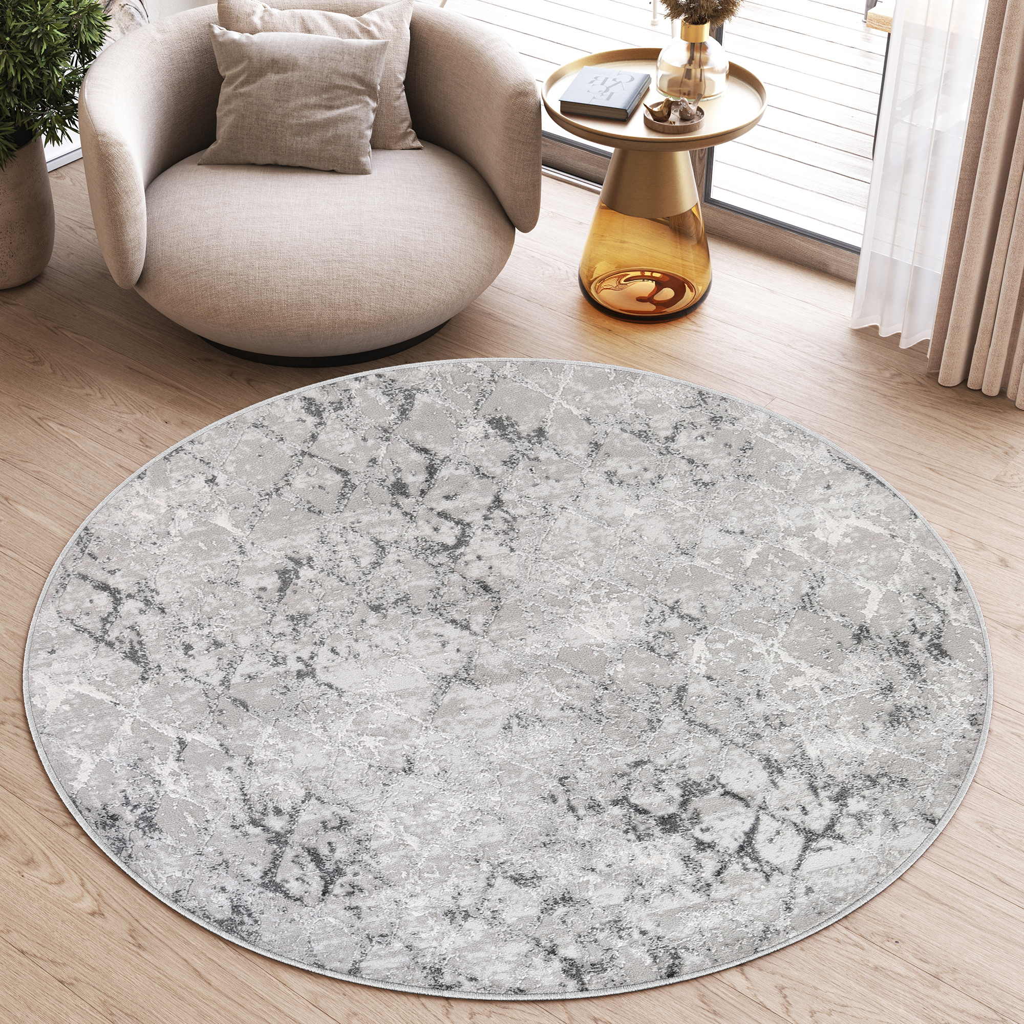 Dominujące kolory w kolekcji to subtelne odcienie niebieskiego, kremowego i szarego, które harmonijnie wpasują się w każde wnętrze, dodając mu wyjątkowego charakteru. Wzory okrągłych dywanów Sky łączą w sobie elementy abstrakcyjne oraz vintage, tworząc niepowtarzalną estetykę, która z pewnością przyciągnie uwagę każdego miłośnika designu.