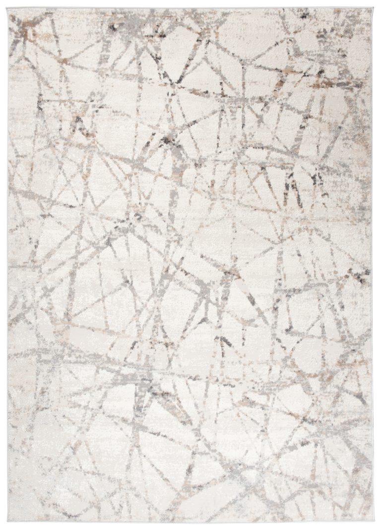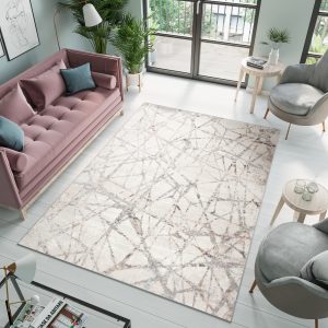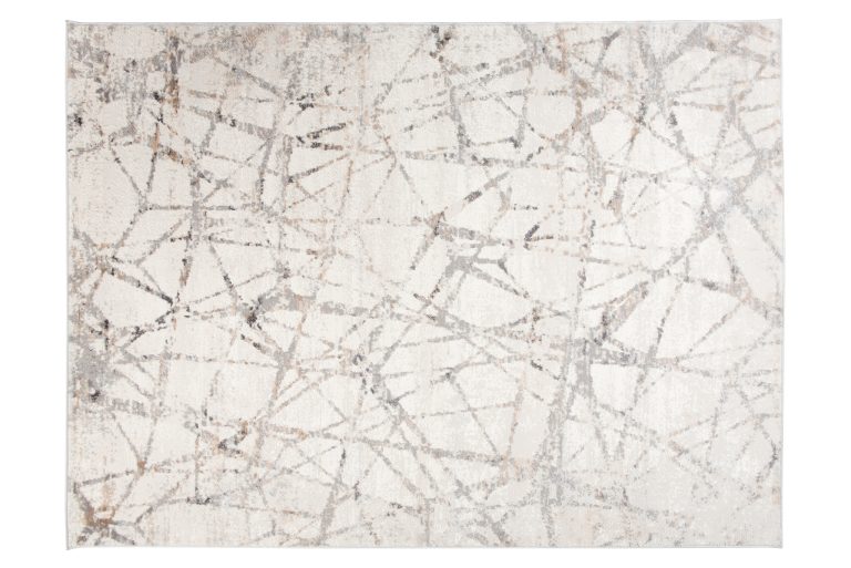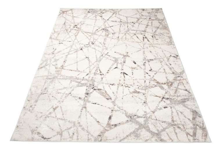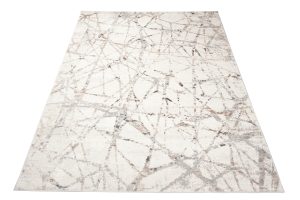 Nowoczesny kremowy dywan Valley odświeży nudny salon oraz rozświetli ciemną sypialnię. Beżowa kolorystyka idealnie wpasuje się do większości stylów wnętrzarskich, w których dominują podobne jasne i spokojne barwy. Artystyczne wzory na jego powierzchni przypominają pajęczą sieć i sprawiają, że produkt ten z pewnością przypadnie do gustu miłośnikom sztuki nowoczesnej. Dzięki prostokątnemu kształtowi dywan będzie współgrał z większością pomieszczeń, a szeroki wybór rozmiarów ułatwi dopasowanie go zarówno do małych, jak i dużych powierzchni. Dzięki niewielkiemu dodatkowi poliestru dywan ma piękną lśniącą poświatę, która sprawia wrażenie, iż włosie jest niezwykle gładkie i miękkie. Produkt został w większości wykonany z wysokogatunkowego polipropylenu, materiału wyjątkowo wytrzymałego na eksploatację oraz uszkodzenia mechaniczne.