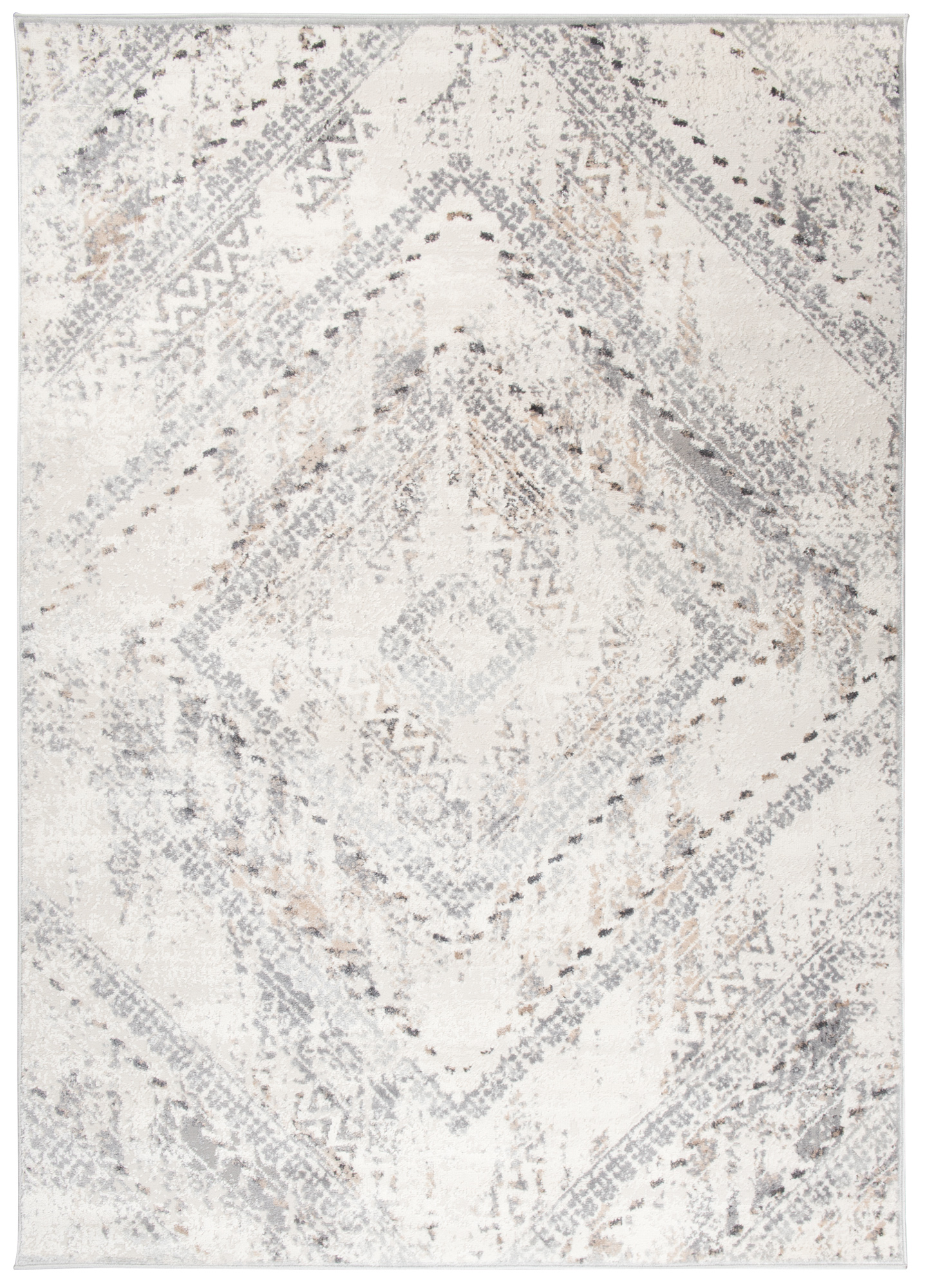 Kremowy dywan z serii Valley zachwyca swoim uniwersalnym i jasnym kolorem. Dzięki połączeniu jasnego beżu z szarością świetnie sprawdzi się w pomieszczeniach o różnych stylach, nie gryząc się z różnokolorowymi dodatkami. Ciekawe geometryczne wzory przywodzą na myśl kulturę aztecką, co sprawia, że produkt ten świetnie wpisze się w style, które cechuje orientalne i egzotyczne wzornictwo. Symetryczne kształty wprowadzają harmonijną atmosferę, która szczególnie przyda się w sypialni. Dzięki różnorodności rozmiarów dywan świetnie wpisze się w pomieszczenia o różnej wielkości, a nawet może służyć jako stylowy chodnik w przedpokoju. Z uwagi na wysoką odporność na ścieranie świetnie sprawdzi się w domach zamieszkałych przez zwierzęta. Delikatne i miłe w dotyku włosie z pewnością docenią osoby, które lubią spędzać wolne chwile bezpośrednio na powierzchni dywanu.