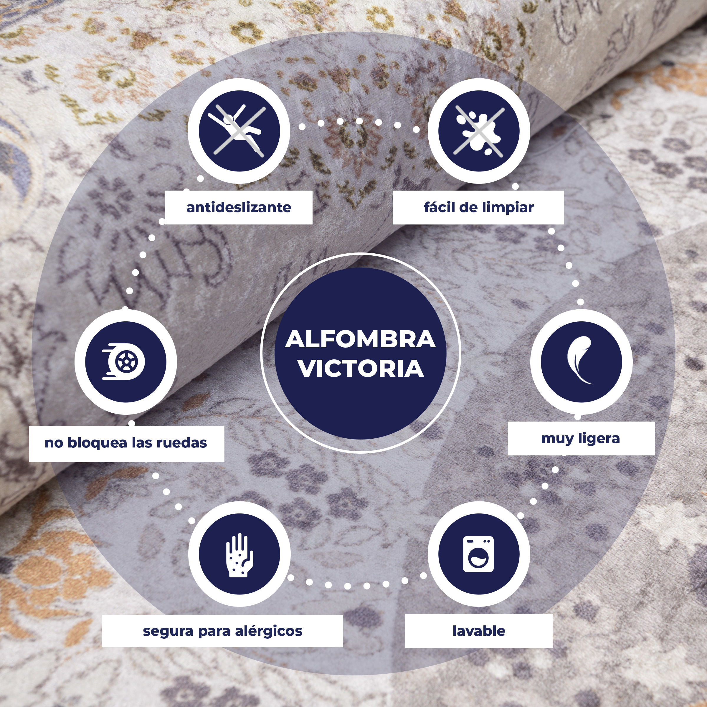 Antypoślizgowe dywany drukowane z kolekcji Victoria zachwycą wszystkich miłośników tradycyjnego stylu. Intensywne kolory i niezwykłe modne wzory będą doskonale wyglądać w sypialni lub salonie zarówno w nowoczesnym jak i tradycyjnym stylu.