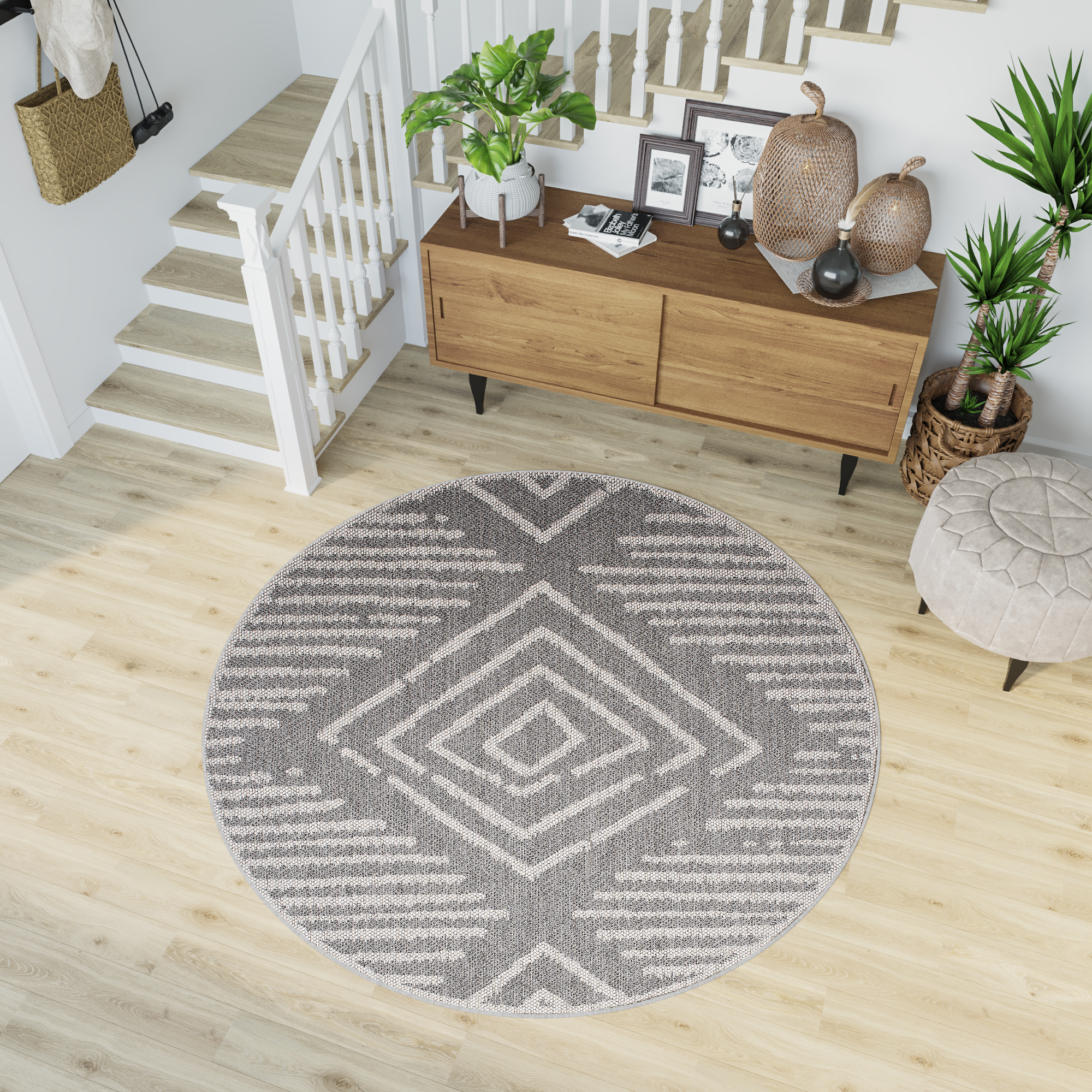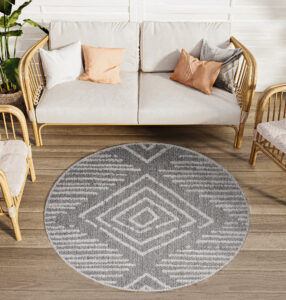 Dywany z okrągłej kolekcji Arrubua wykonane są z włókien polipropylenowych, dzięki czemu idealnie nadają się do użytku w wilgotnych pomieszczeniach. Nawet gdy zamokną i wyschną, nie tracą swojej tekstury ani walorów estetycznych.