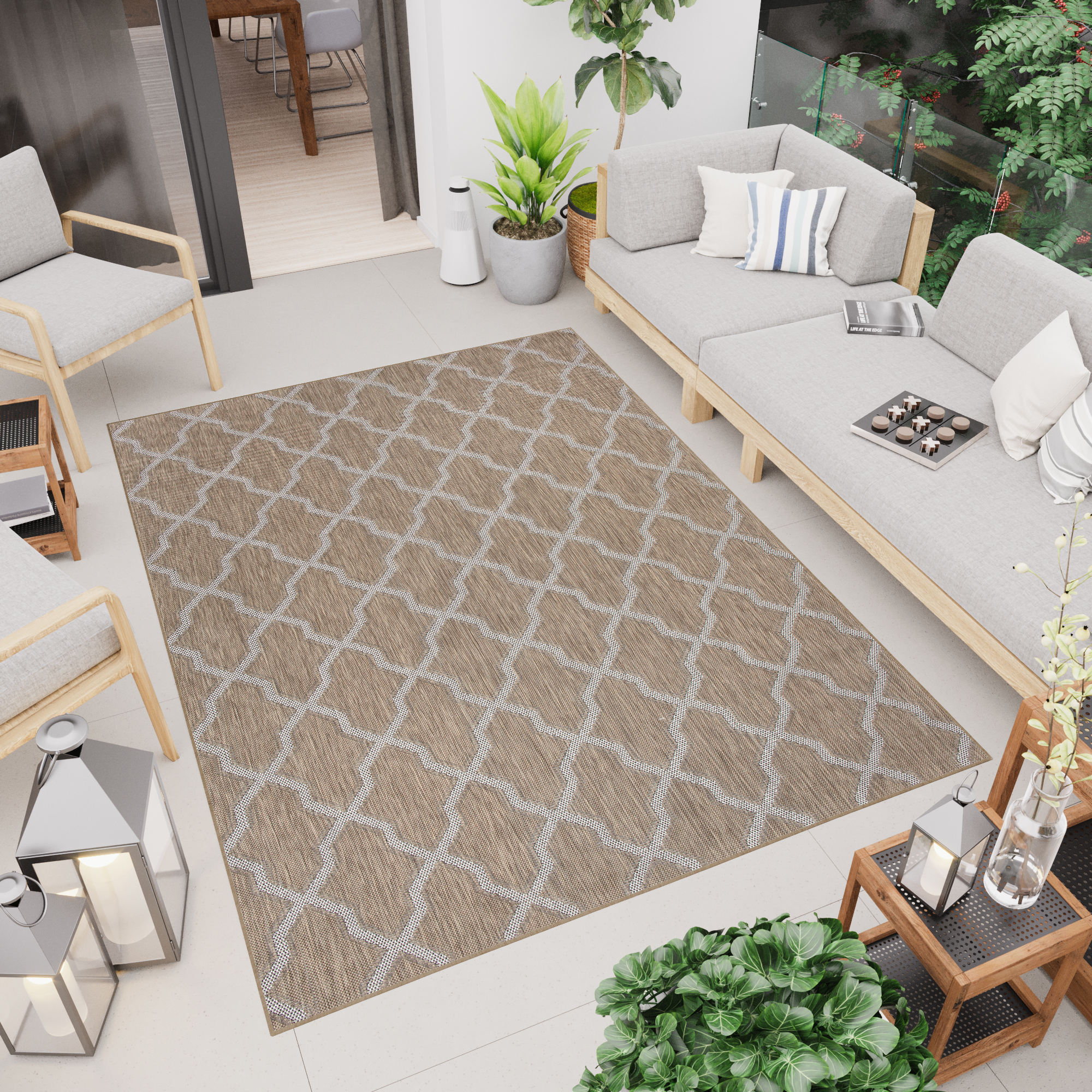 • Dywan Zewnętrzny Capri Brązowy Trellis Ramka