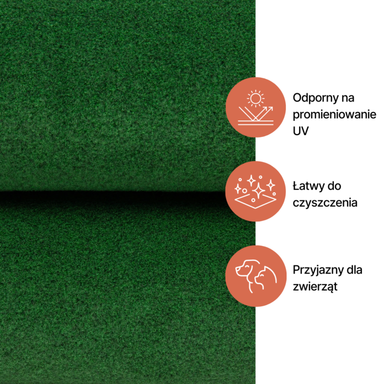 Wykładzina dywanowa Garden w klasycznym zielonym odcieniu to idealne rozwiązanie dla osób ceniących sobie estetykę i wygodę. Ten produkt wniesie świeżość i harmonię do każdego miejsca – zarówno na balkonie, tarasie, jak i w ogrodzie. Dzięki przemyślanej konstrukcji zapewnia komfort użytkowania i wyjątkową trwałość.